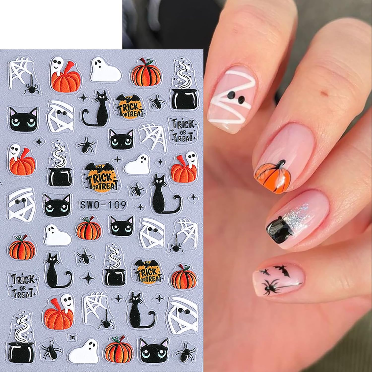 - 【Premium Nail Sticker Set with Diverse Designs】Includes 4 sheets of high-quality Halloween nail stickers featuring popular patterns like floral, geometric, and glitter designs. Each sticker measures 10 x 6.5 cm (3.94 x 2.56 inches), ideal for natural and artificial nails