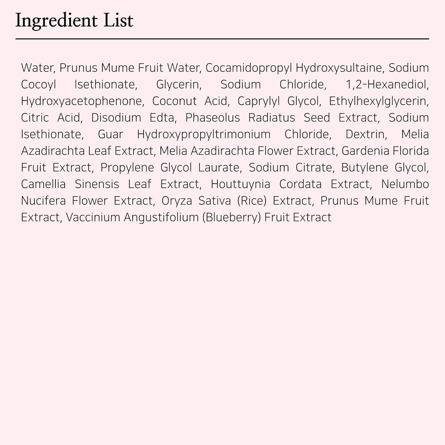 - Refreshing Cleanser: A gel-type cleanser containing oriental herbal ingredients such as plum water, plum extract, and mung bean extract. It protects the natural barrier of skin by maintaining oil and moisture balance while wiping away wastes