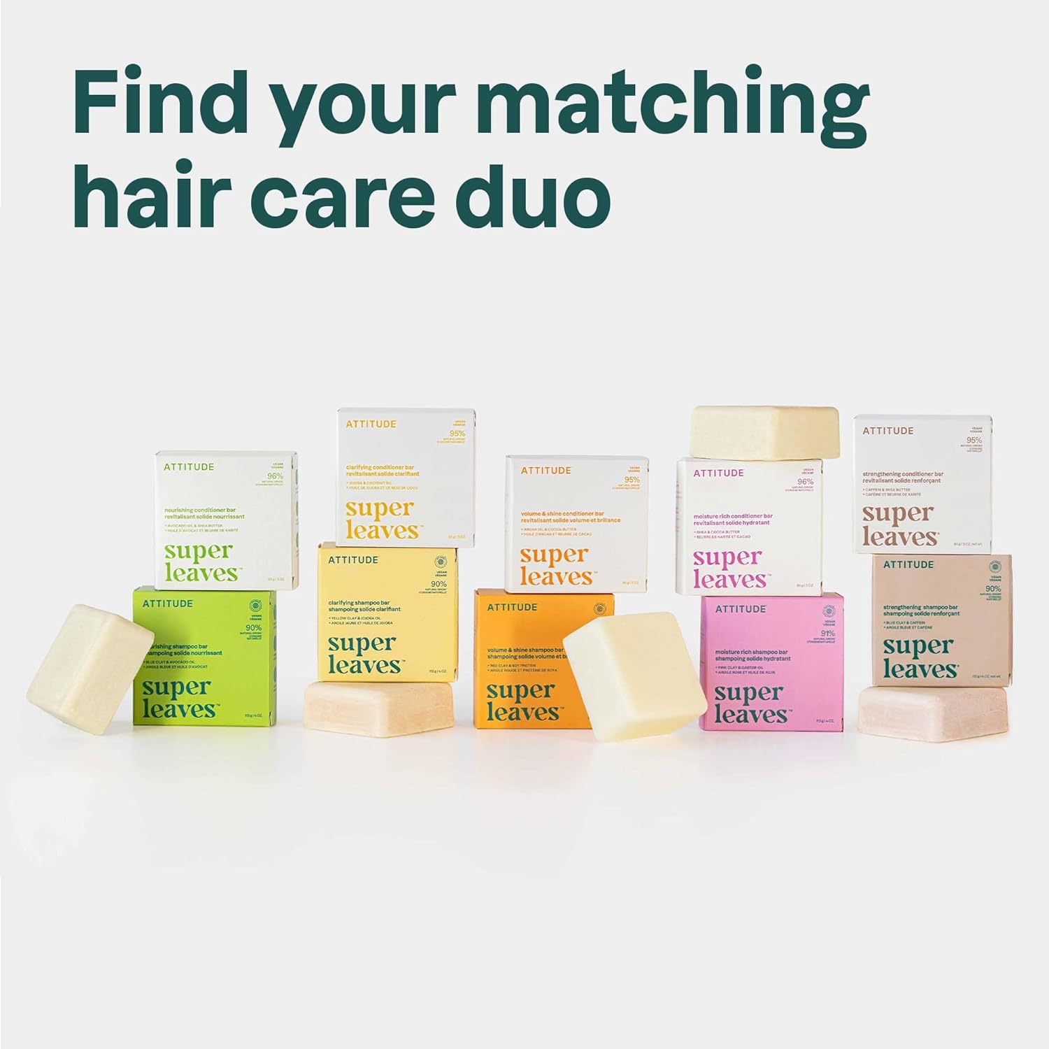 ATTITUDE Strengthening Shampoo Bar, Natural Origin, for Hair Repair & Breakage, Blue Clay & Caffeine, EWG Verified & Clean Ingredients, Vegan, Sandalwood & Cedar Scent, 4 Oz